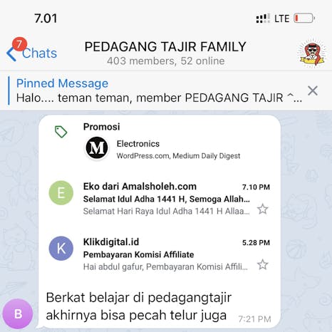 Anda juga akan mendapatkan akses gratis di grup diskusi melalui grup telegram maupun FB bersama ratusan member lainnya